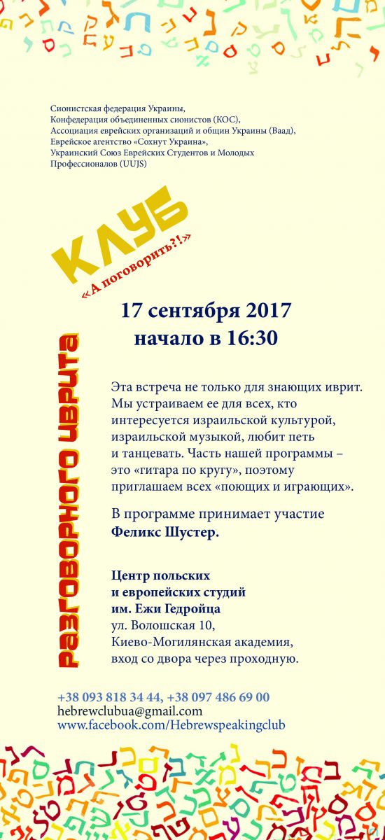 В воскресенье,  17 сентября, в 16:00 Клуб разговорного иврита приглашает всех на открытие нового сезона.
