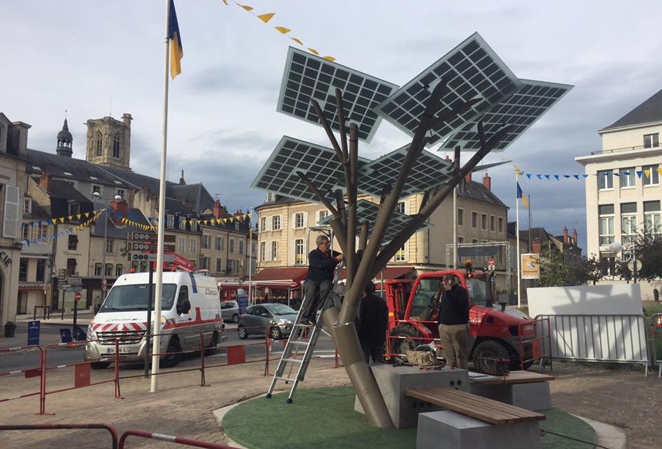 40-тысячный городок Невер в Бургундии стал первым в Европе, где «выросло» израильское искусственное дерево eTree. Вместо листьев у «растения» израильской компании Sol-logic — огромные солнечные панели. Присев на лавочку в тени этой кроны, можно зарядить смартфон или планшет, воспользоваться бесплатным wi-fi, получить справку через интерактивный ЖК-дисплей или утолить жажду из двухуровневого фонтана с питьевой водой (предусмотрен даже отдельный лоток для животных). С наступлением темноты eTree, напоминающее акацию, превращается в красивый уличный фонарь.
