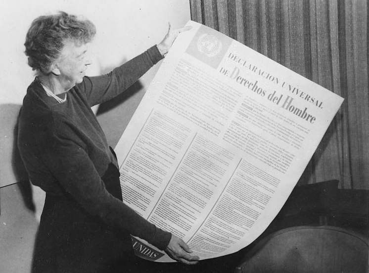 Элеонора Рузвельт с текстом Всеобщей декларации прав человека, 1948