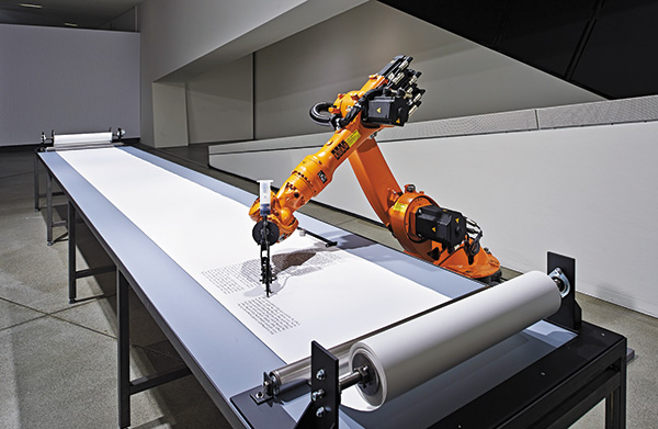 Робот пишет свиток Торы в Еврейском музее Берлина. Фото: Yves Sucksdorff