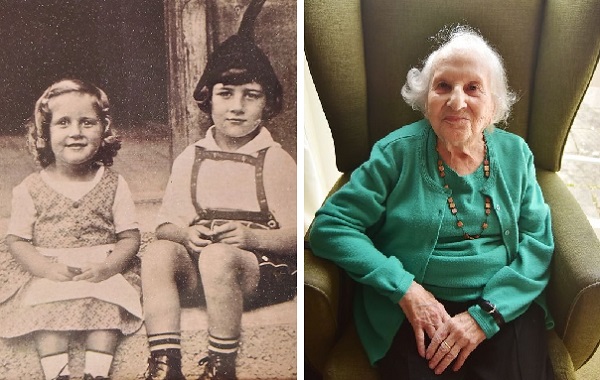 Алиса с братом Ричардом, нач. 1920-х             ...и сегодня. Фото: Dan Regan, BristolLive