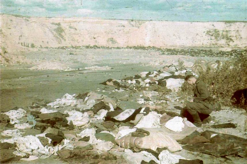 Немецкий солдат у вещей убитых в Бабьем Яру евреев, октябрь 1941