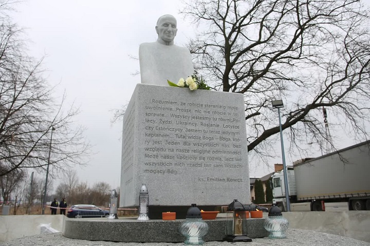 И вот, в Люблине, на окраине которого нацисты создали лагерь смерти Майданек, тоже появился памятник украинскому праведнику. Над монументом работали скульптор Александр Дяченко и архитектор Марта Дяченко. Решение об установке памятника мэрия польского города приняла еще в 2018 году, год спустя президент Украины Петр Порошенко принял участие в его закладке памятника, а к 77-й годовщине со дня смерти священника, монумент открылся для всеобщего обозрения. С трех сторон, на польском, украинском и еврейском языках выгравирован знаменитый фрагмент письма отца Ковча из концлагеря.